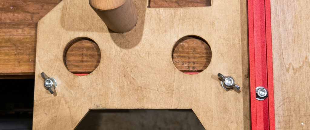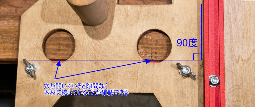 Tスロットトラックを活用し、経年変化などで直角がズレた際も現場で即座に修正できる構造にしました。調整部には蝶ねじ(ウィングボルト)を採用。工具を準備する手間なく、指先ひとつで常に正確な直角(90度)を維持できます。